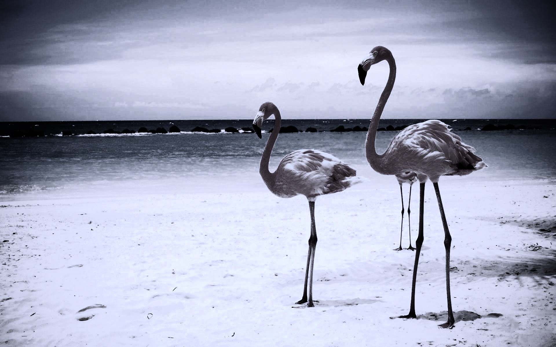 «Розовые фламинго на пляже»