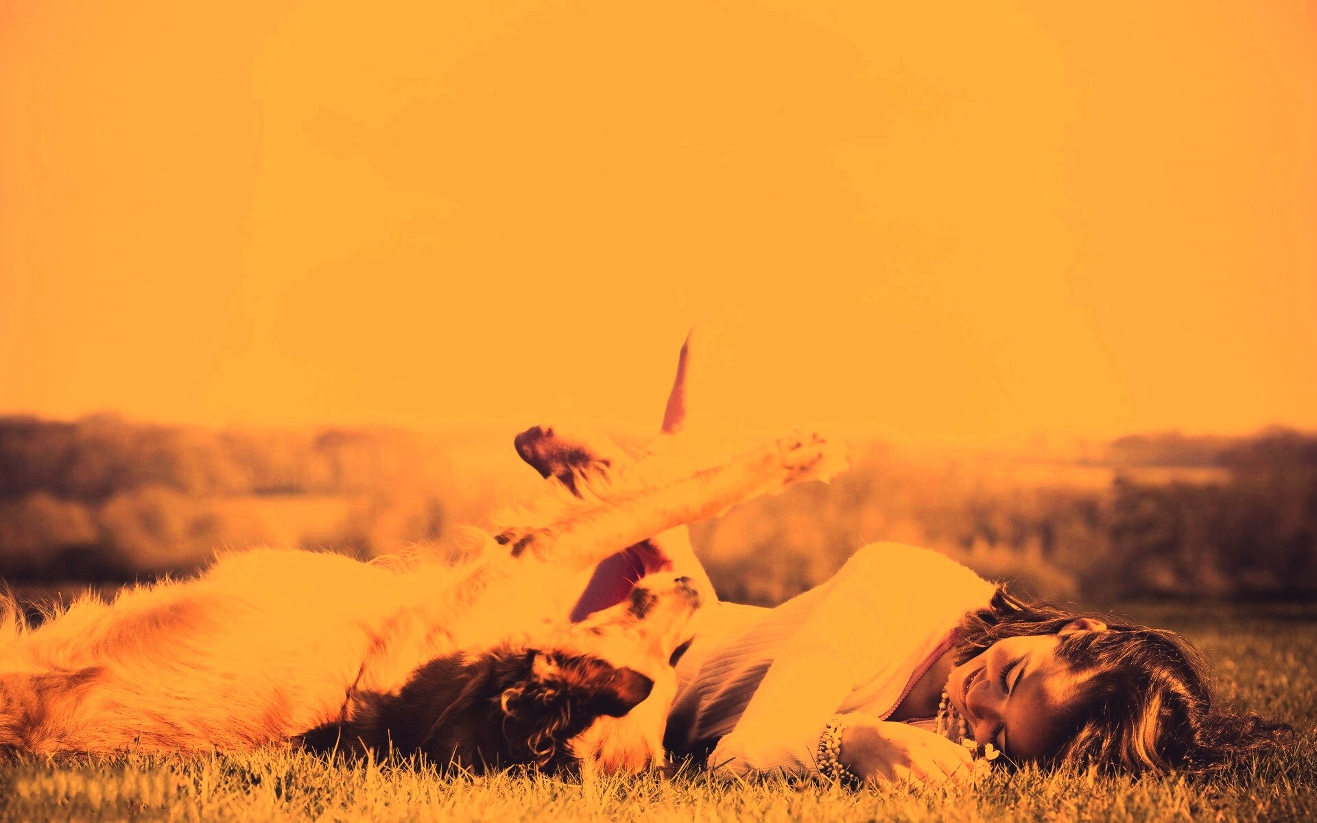 «Девушка и собака валяются на траве»