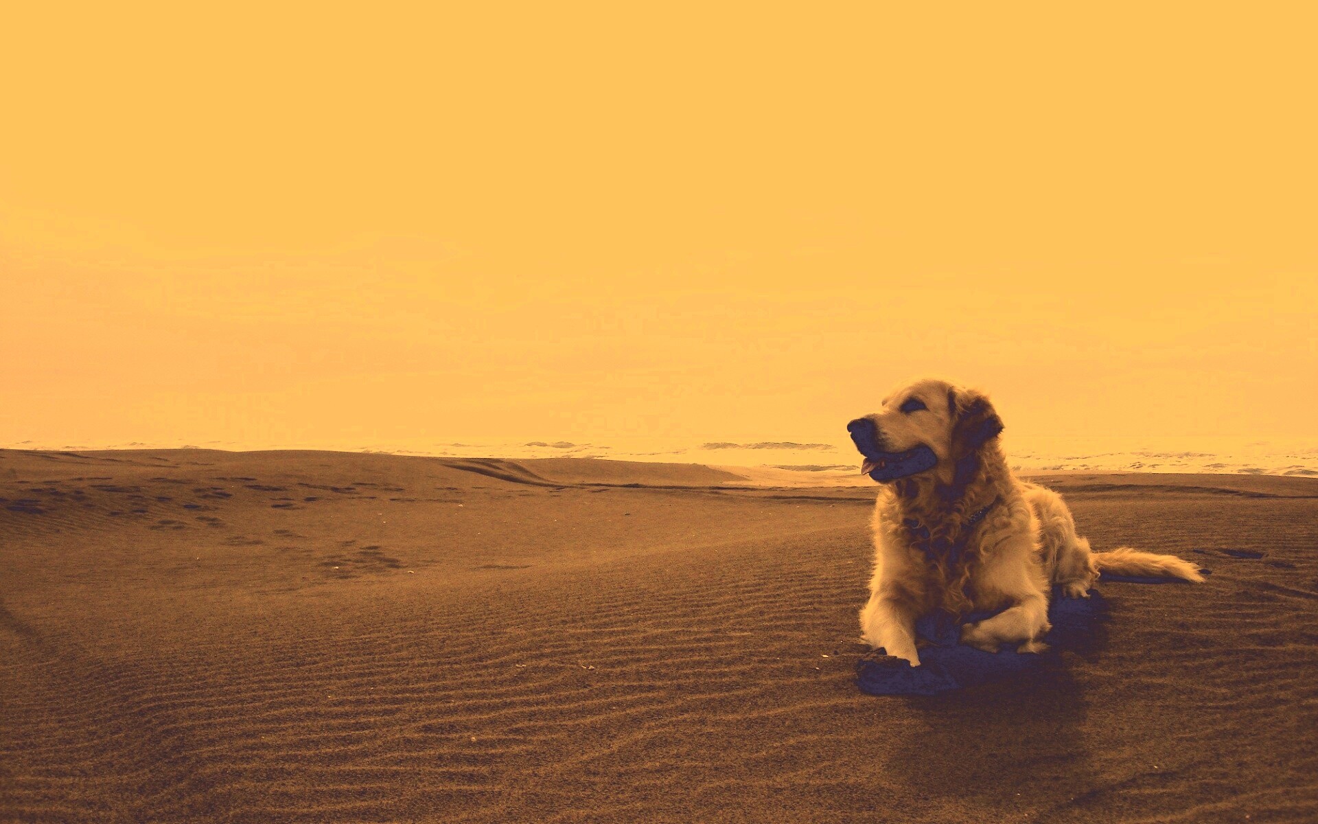 «Красивая собака на оранжевом песке»