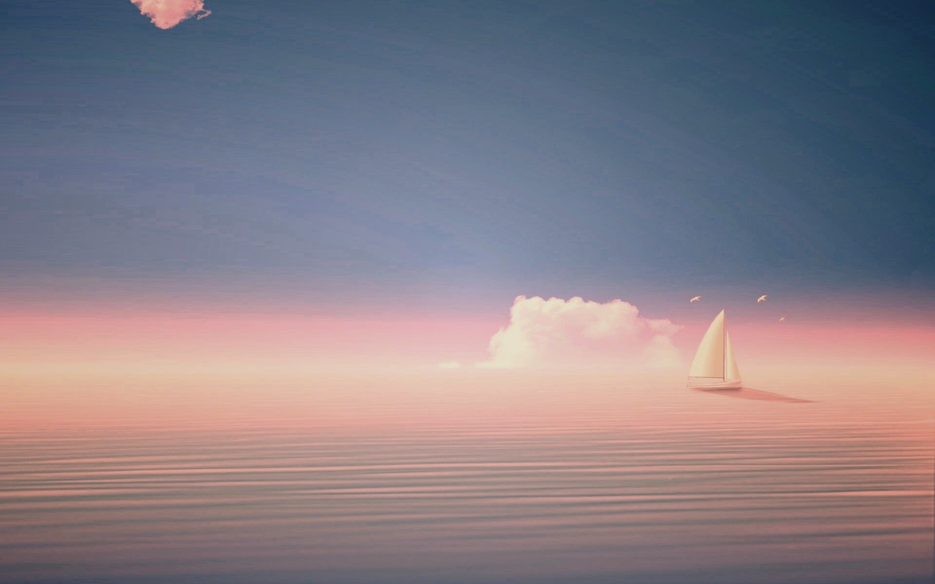 «Голубые обои под хорошее настроение с парусником»