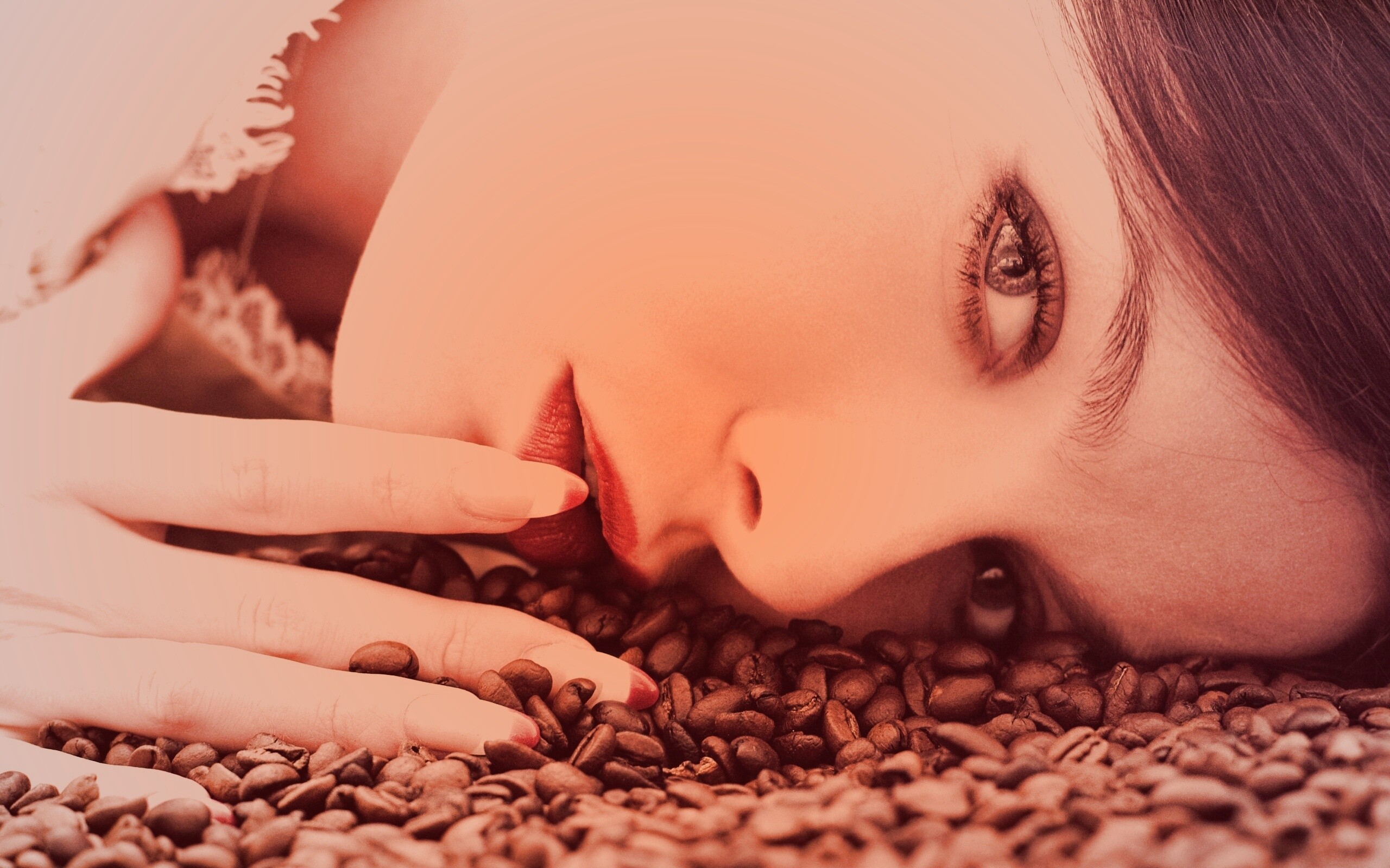 «Соблазнительная девушка с кофейными зернами»