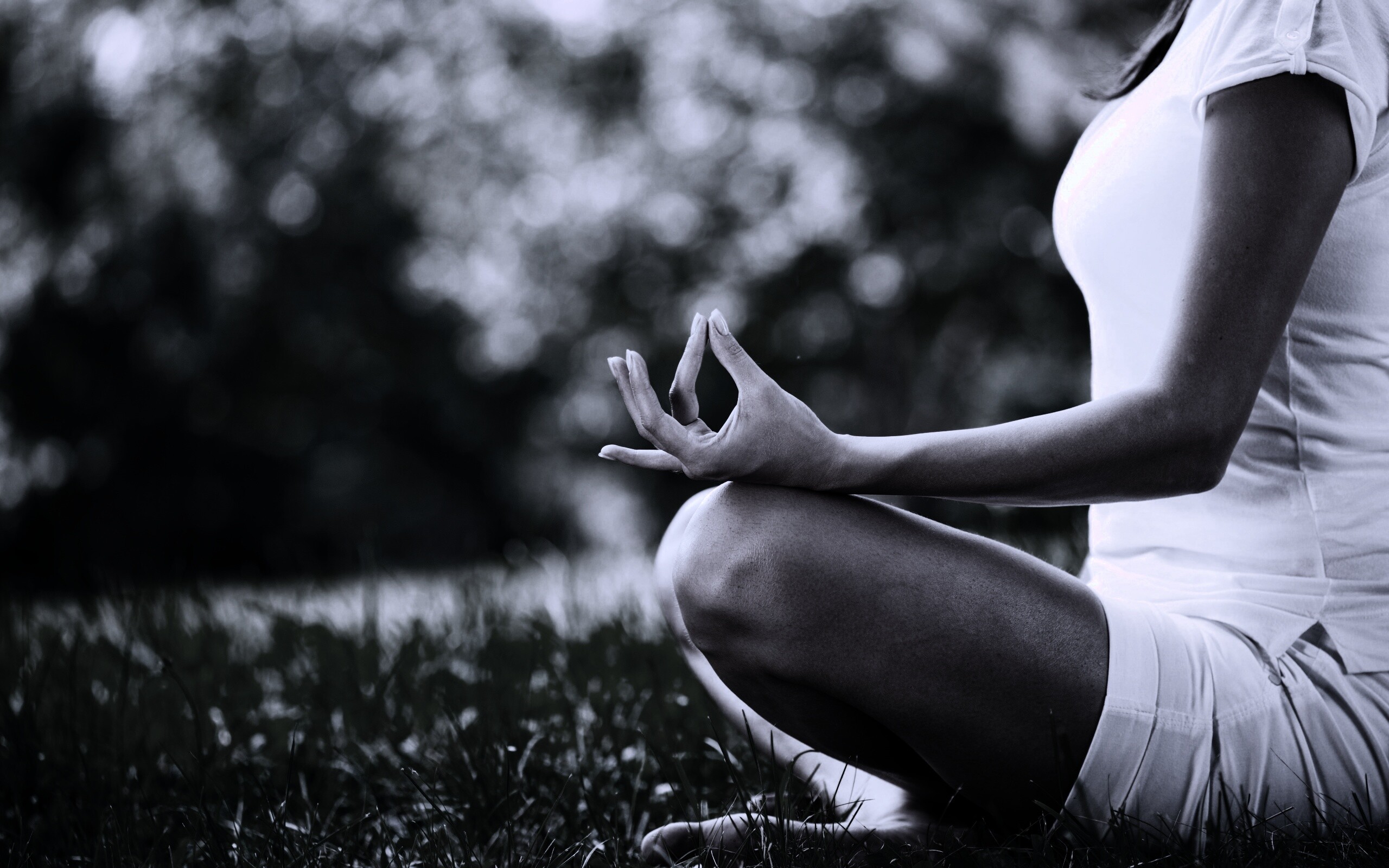 «Девушка медитирует в позе лотоса на траве»