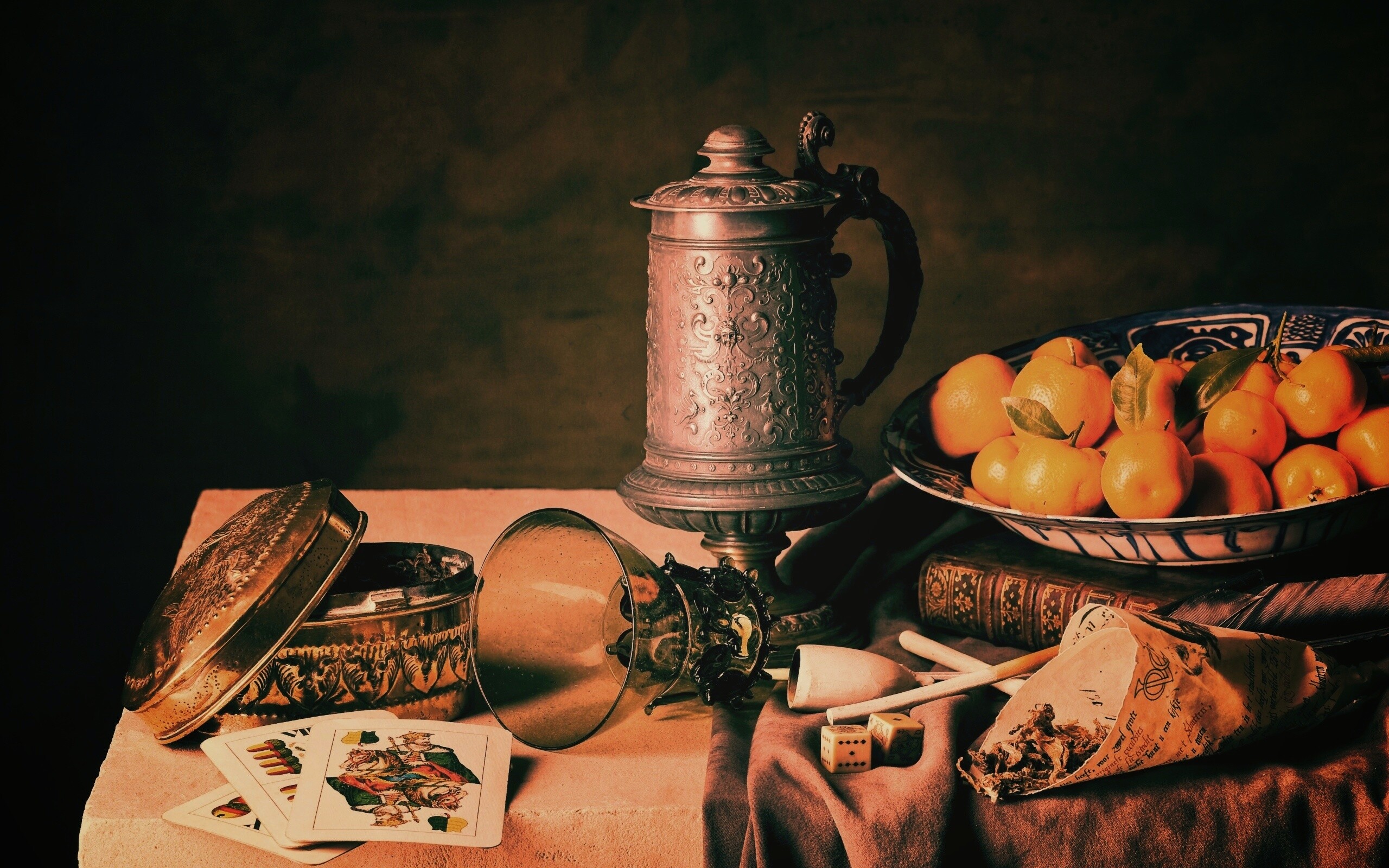 Обои для рабочего стола «Подготовка к натюрморту» 2560х1600 с фильтром earlybird (оригинал 4132х2755)