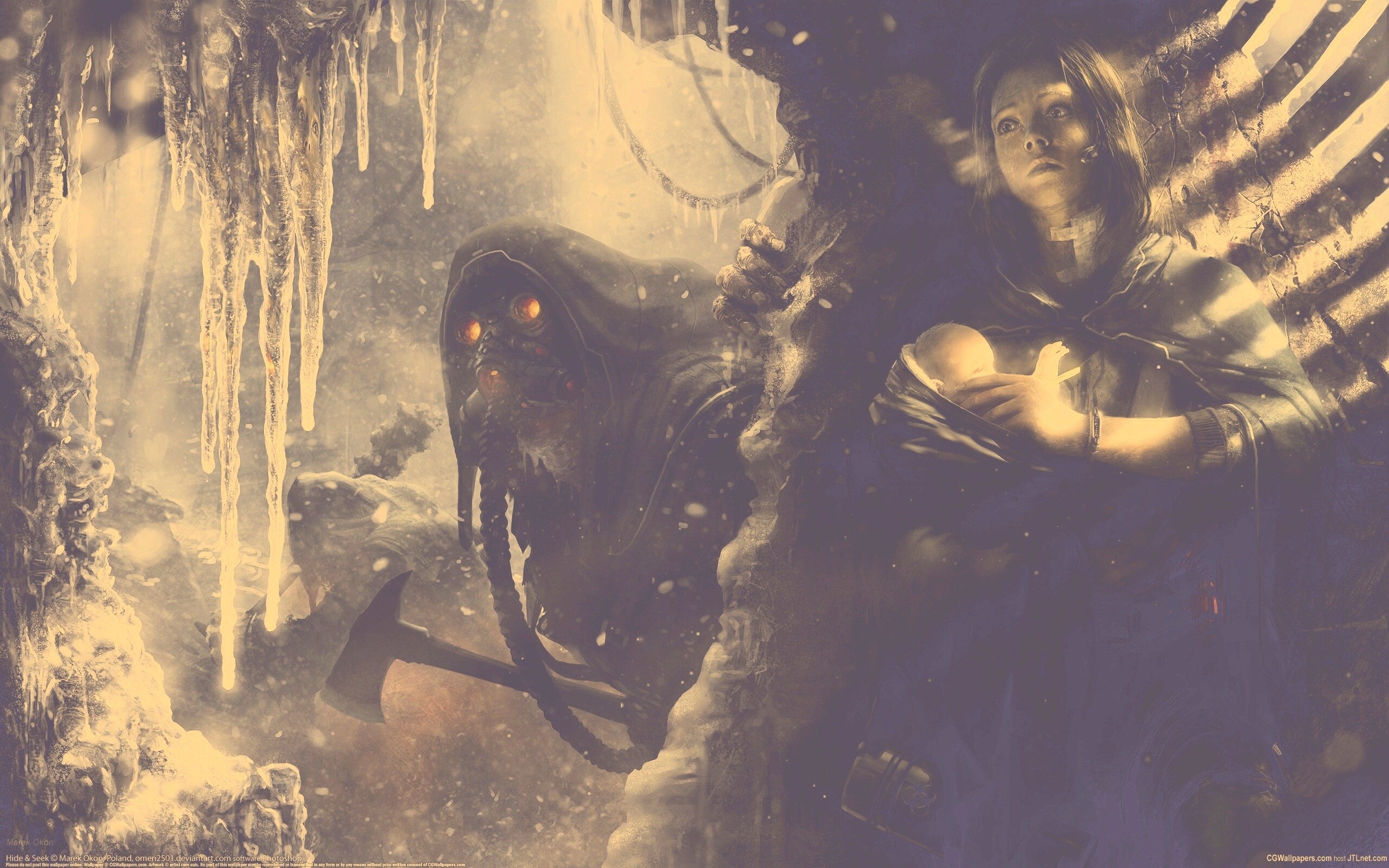 «Девушка с ребенком прячется от монстра»