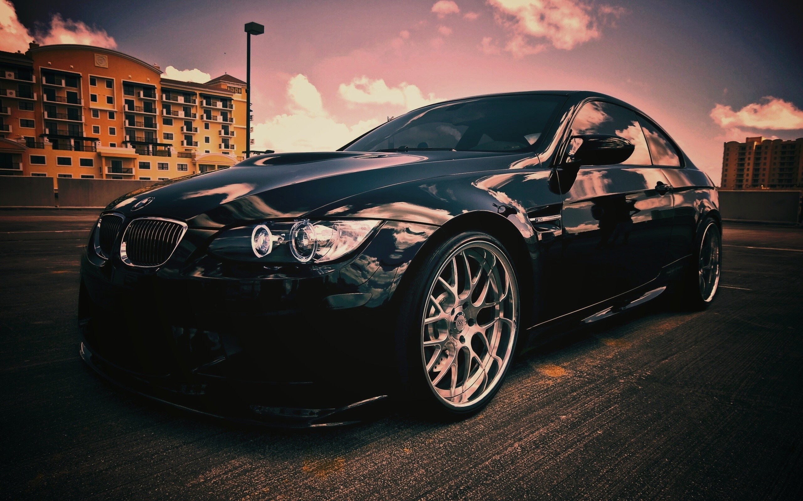 «Красивый черный BMW на парковке»