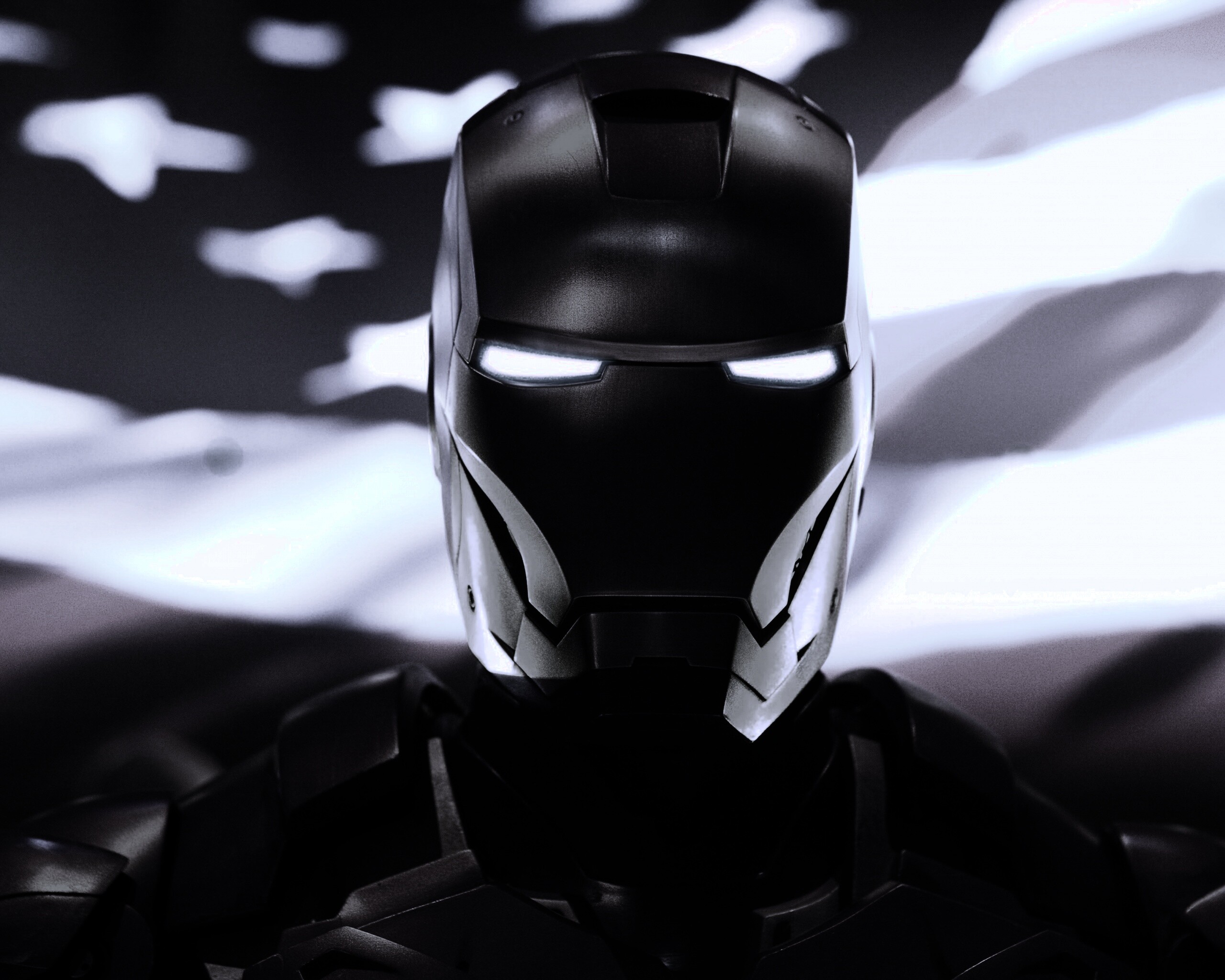 «Железный человек на фоне американского флага»