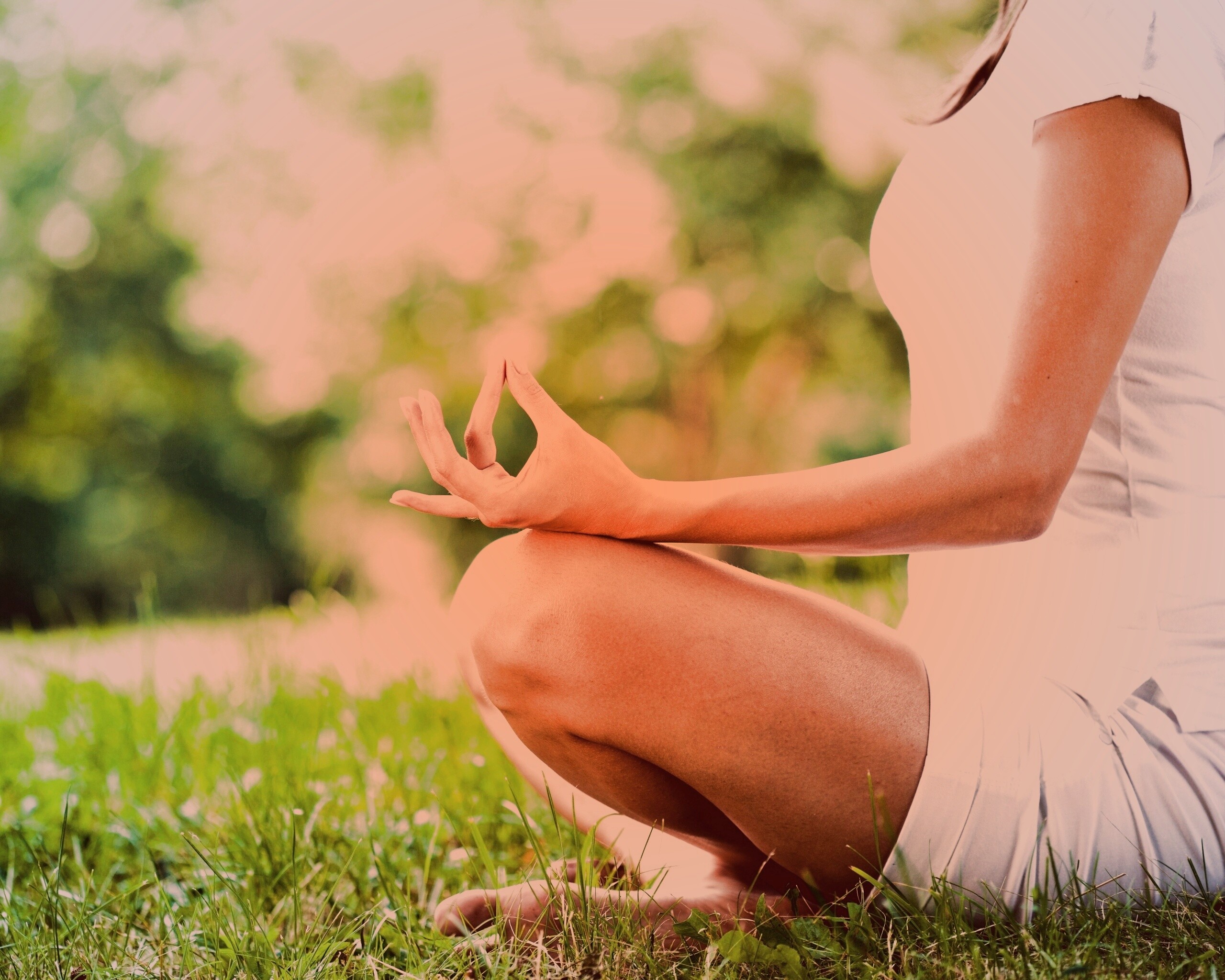 «Девушка медитирует в позе лотоса на траве»