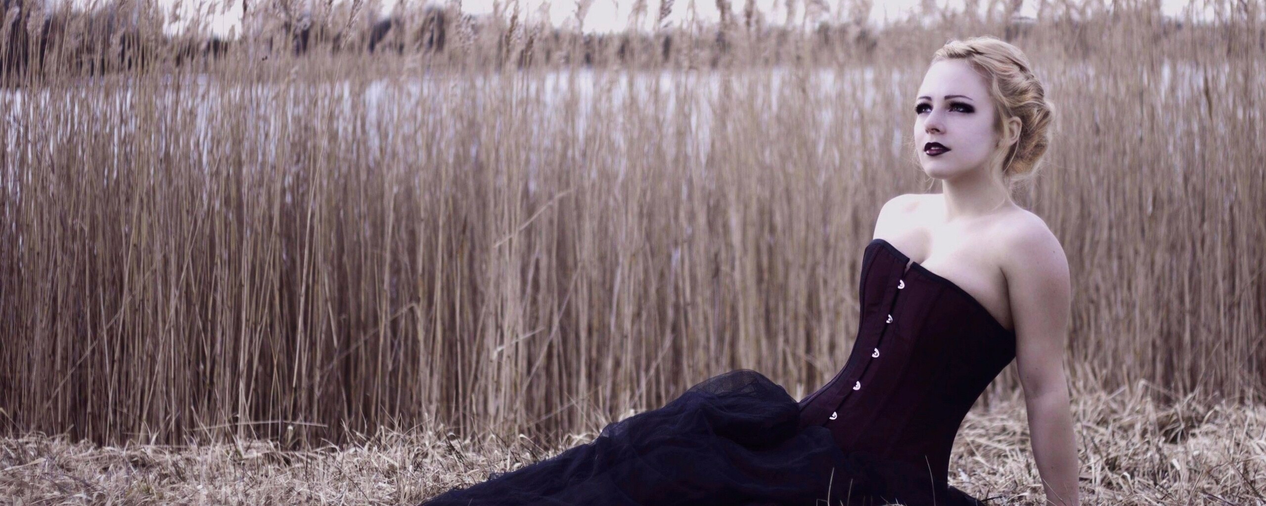 «Девушка на траве в черном корсете»