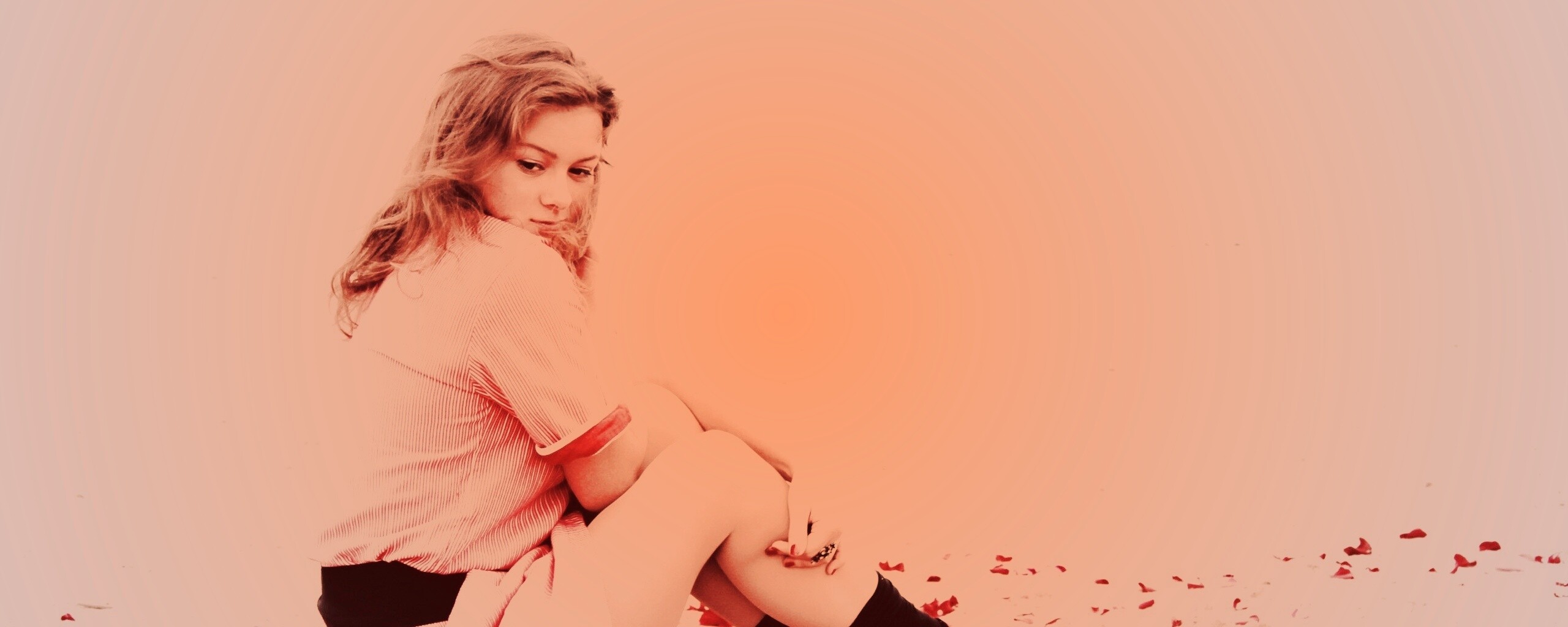 «Девушка среди лепестков на пляже»