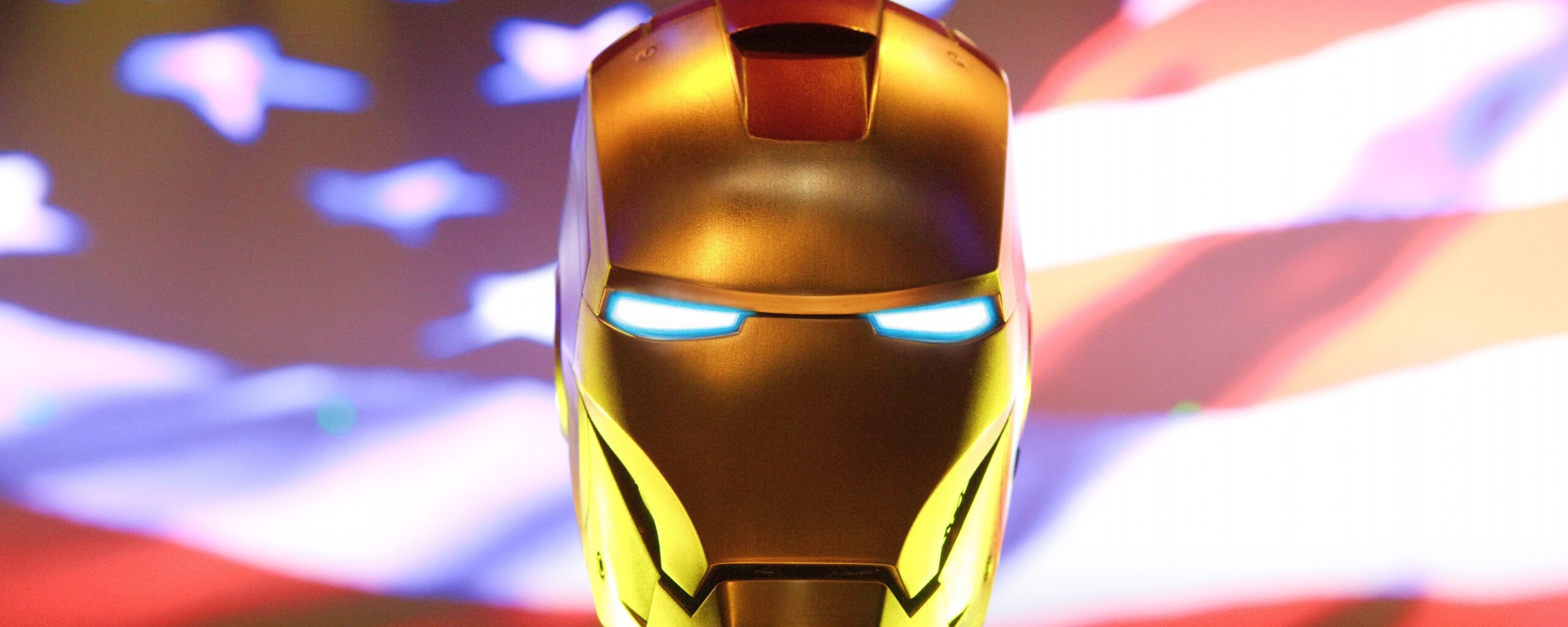 «Железный человек на фоне американского флага»
