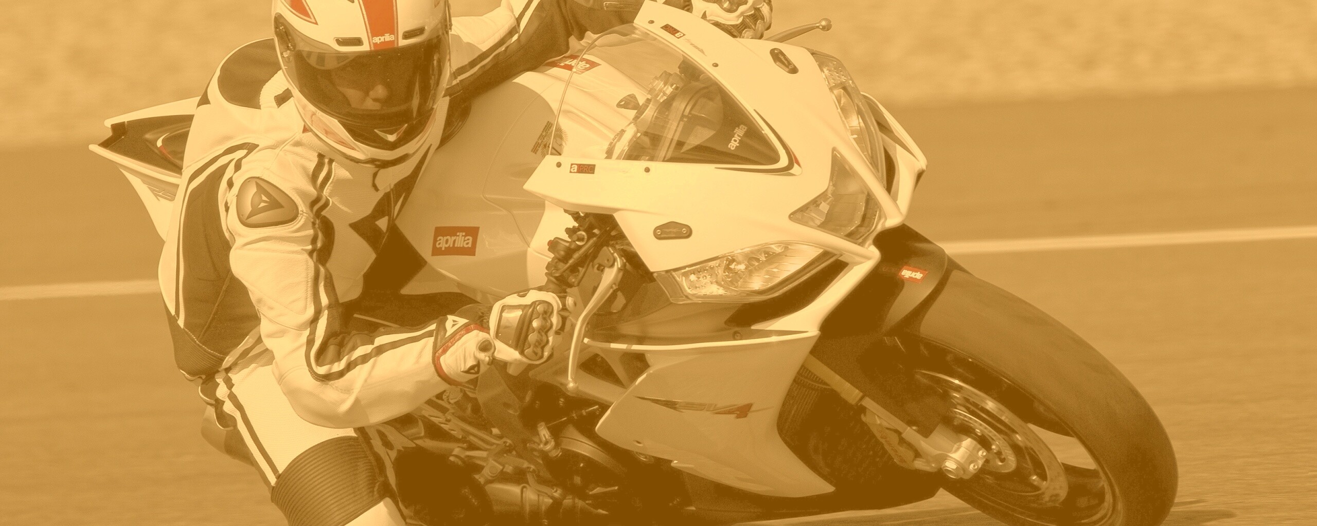 «Байкер в белой экиперовкена Априлия РСВ4»