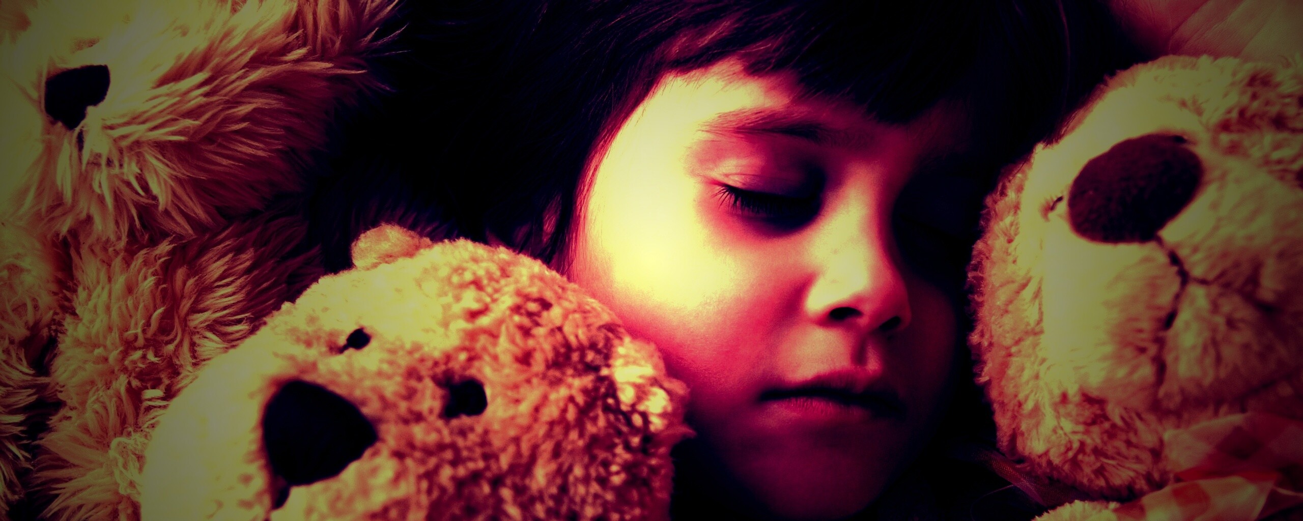 «Девочка спит с мишками в обнимку»