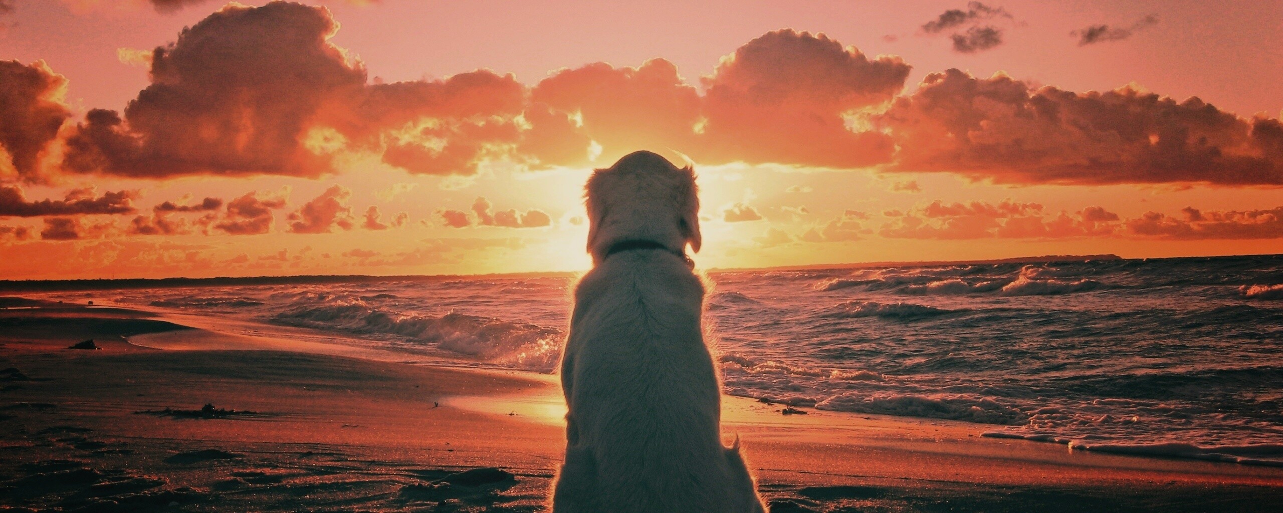 «Собака наблюдающая закат на пляже»