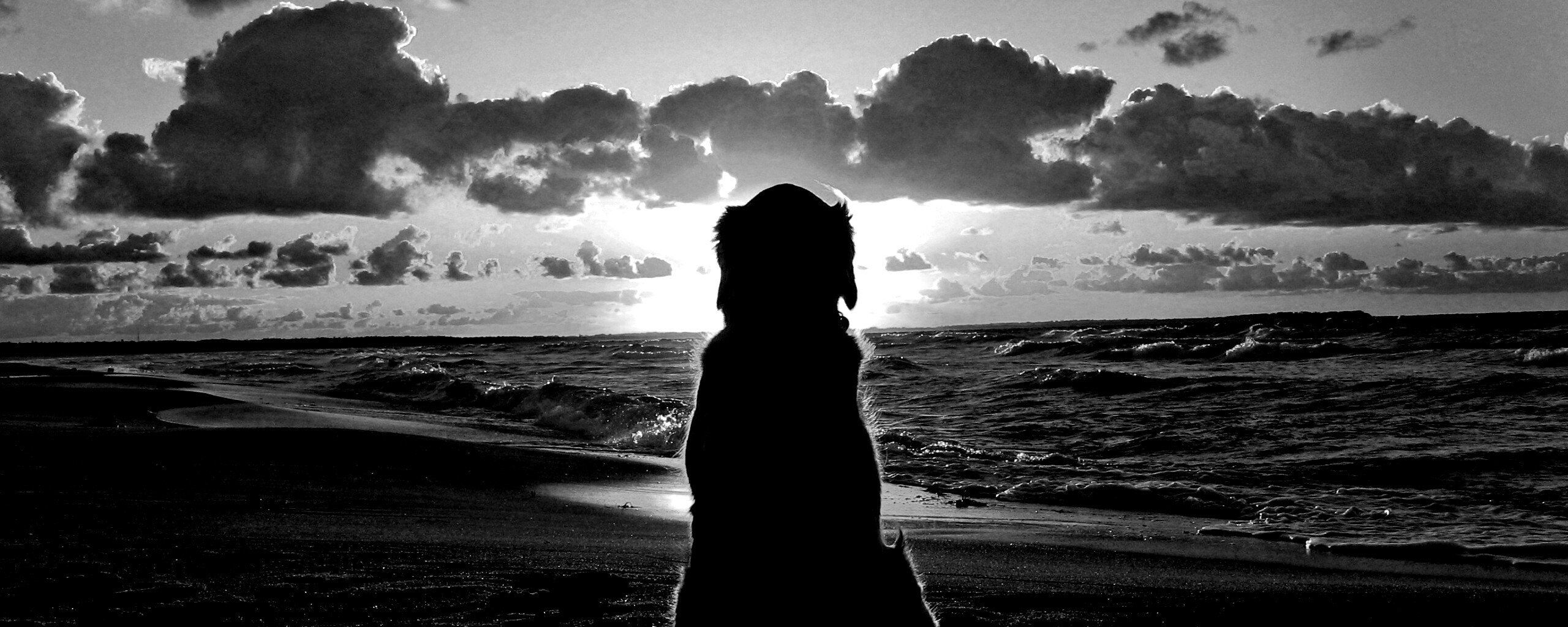 «Собака наблюдающая закат на пляже»