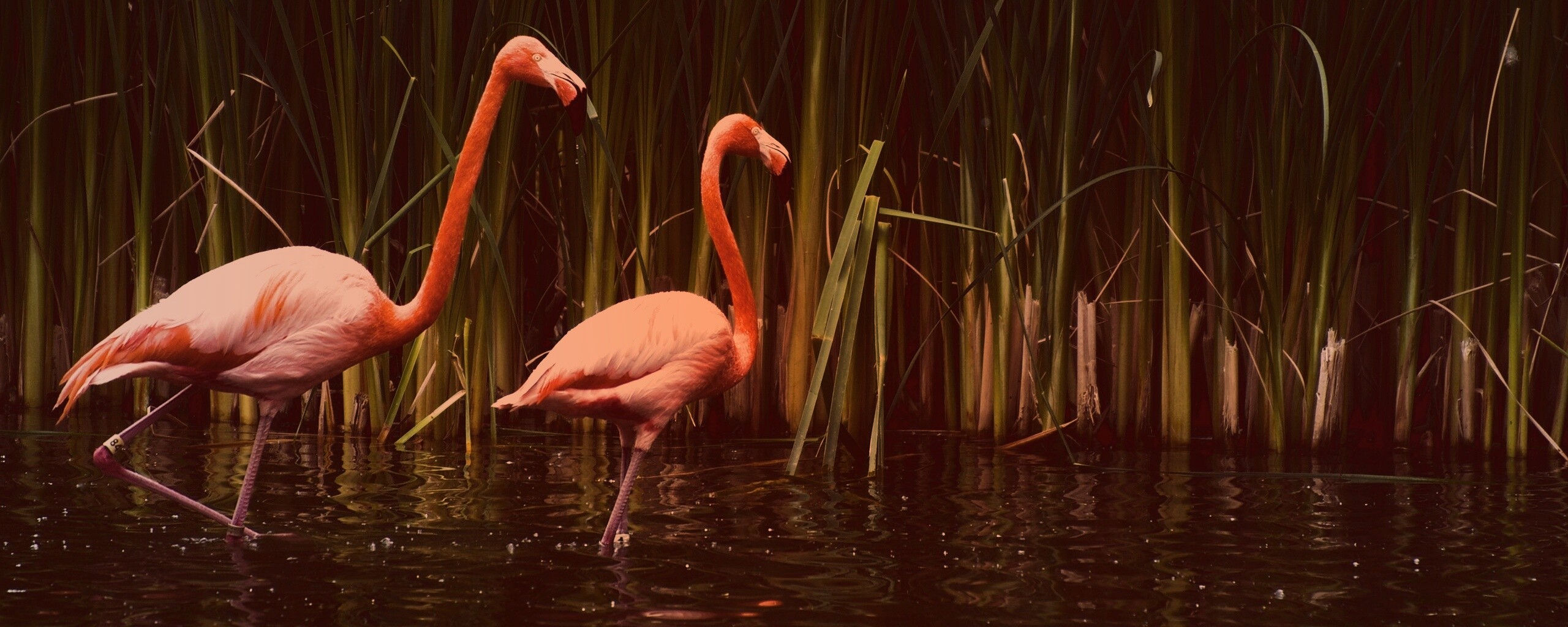 «Красивые розовые фламинго на озере»