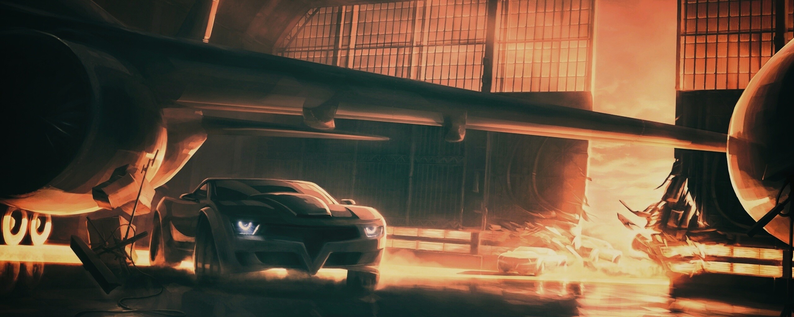 «Машины въезжают в ангар»