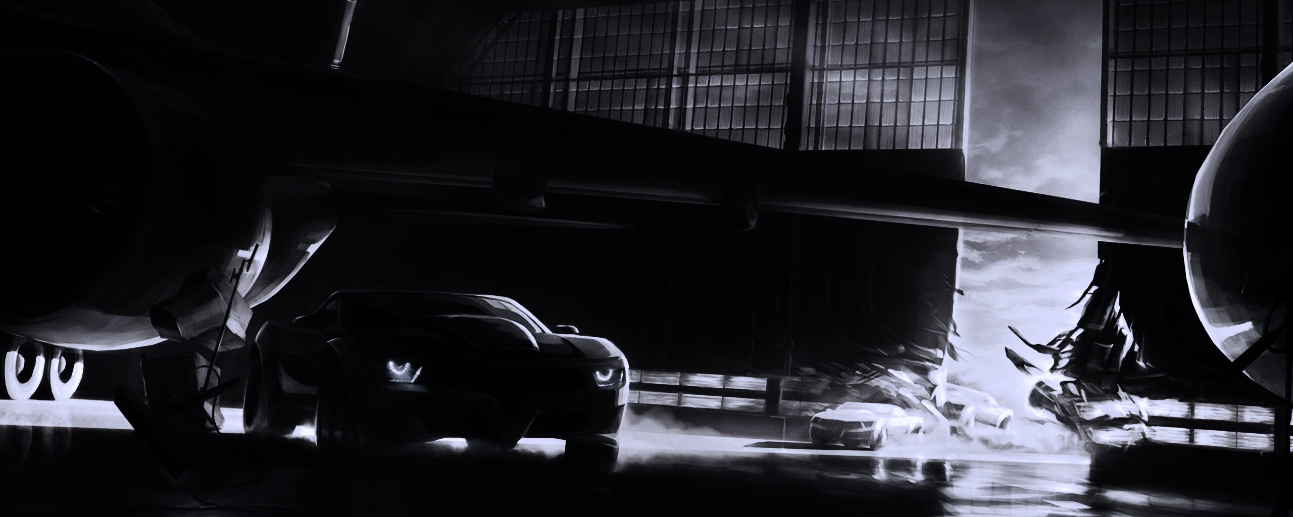 «Машины въезжают в ангар»