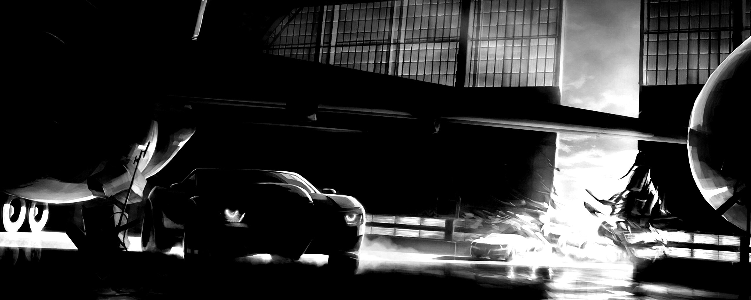 «Машины въезжают в ангар»