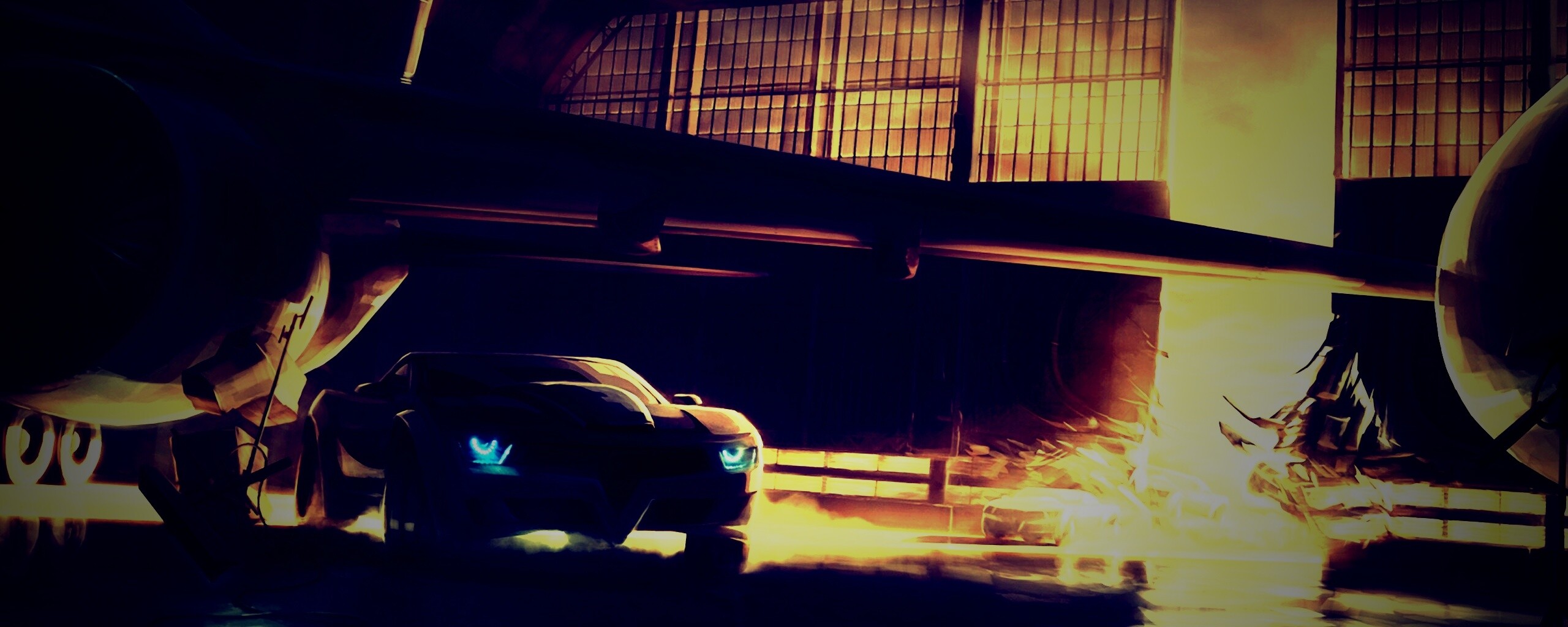 «Машины въезжают в ангар»