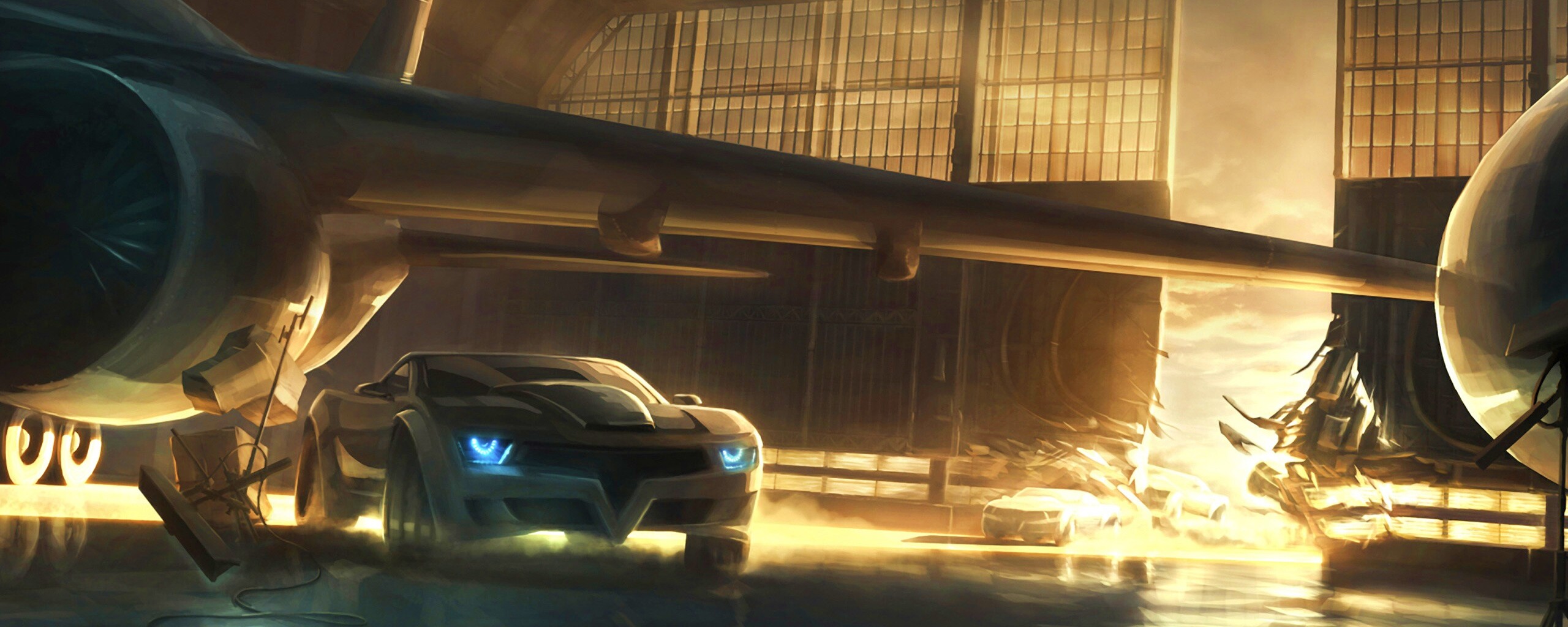 «Машины въезжают в ангар»