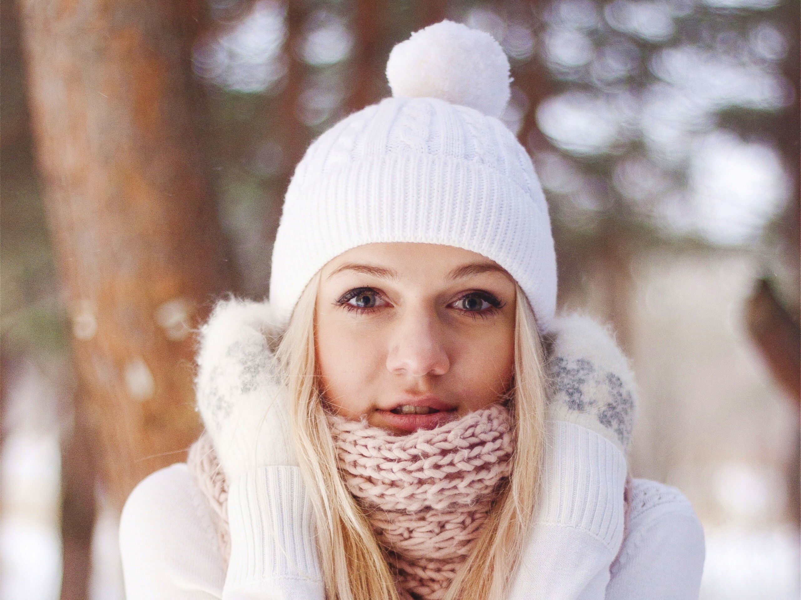 «Девушка в белом в снежном лесу»