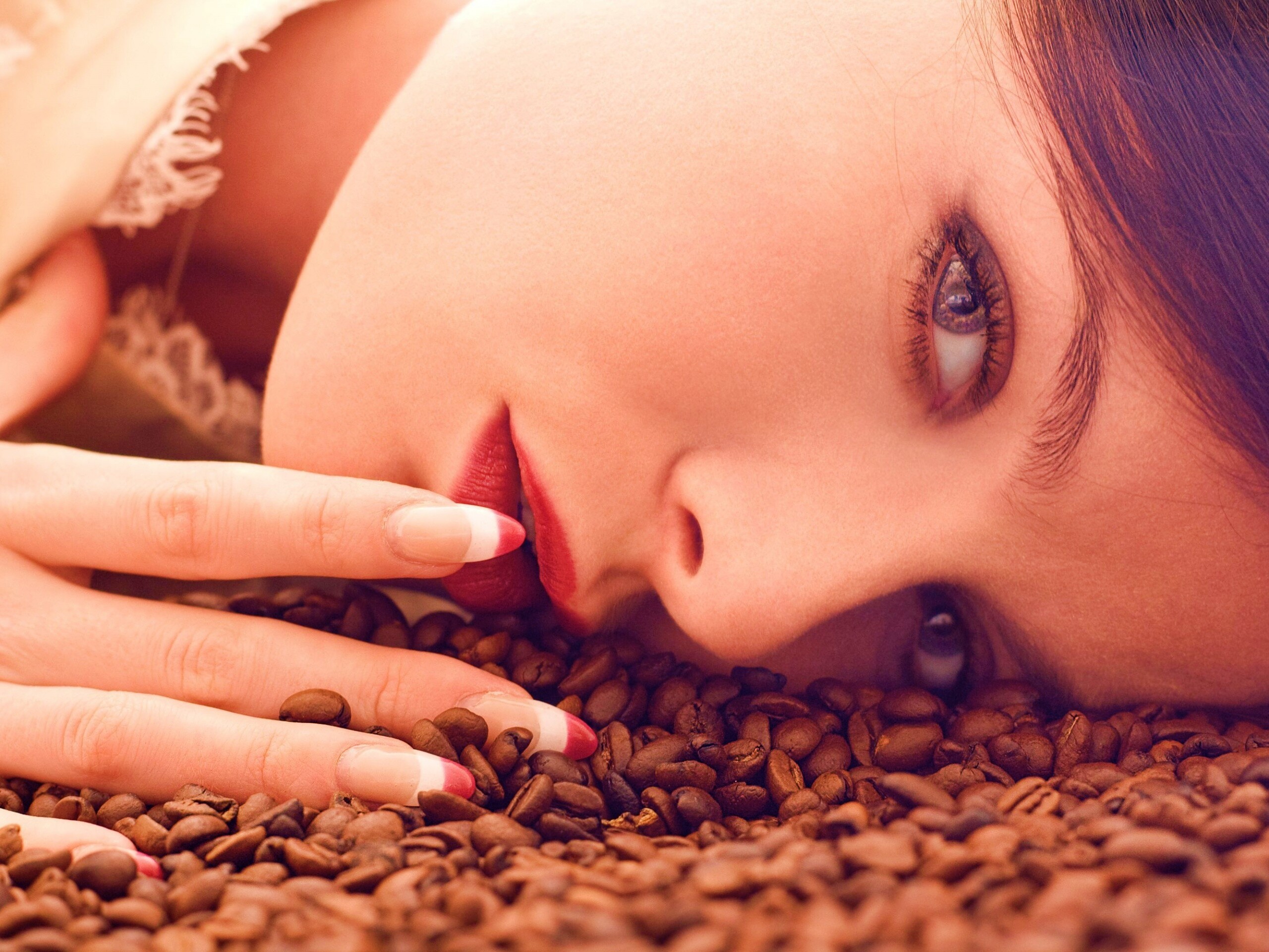 «Соблазнительная девушка с кофейными зернами»