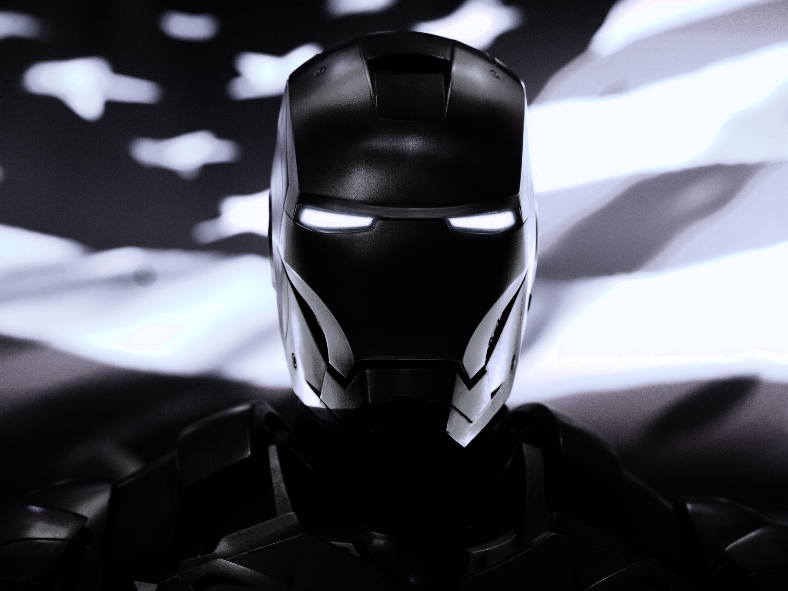 «Железный человек на фоне американского флага»