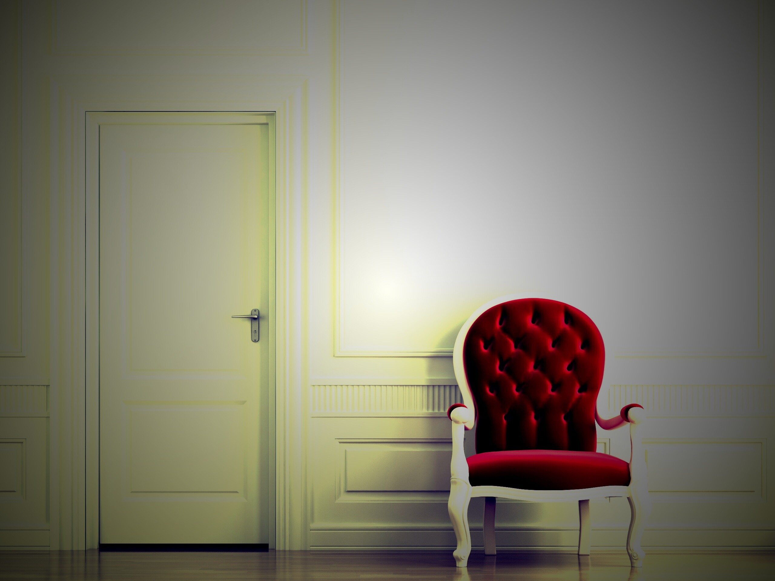 «красное кресло в белой комнате»