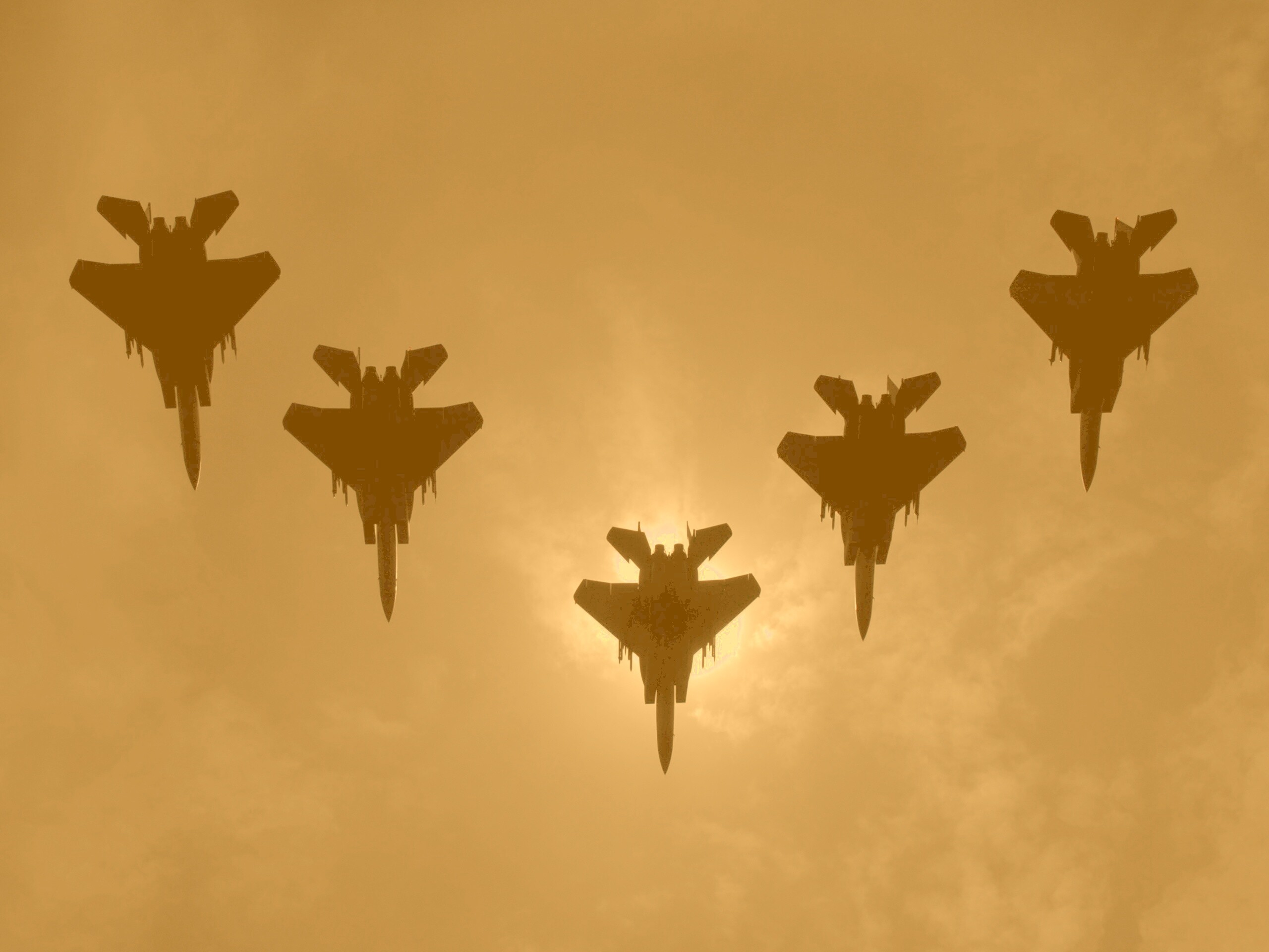 «Ряд истрибителей на фоне солнца»