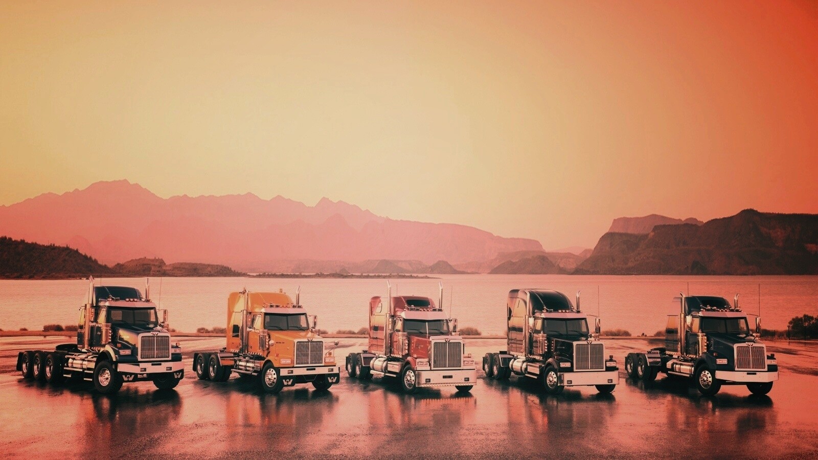 «Тягачи на фоне озера»