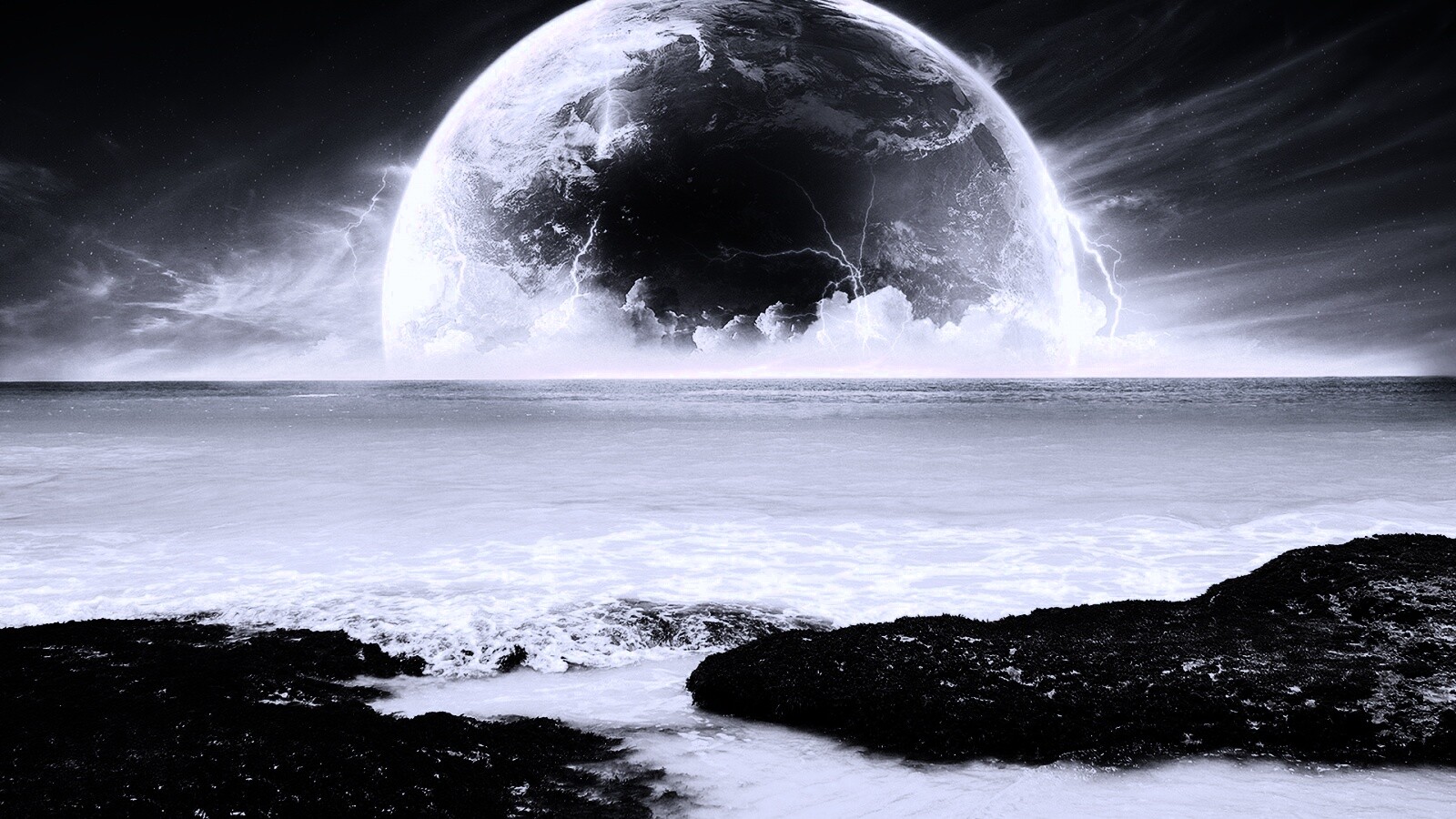 «Огромная луна над океаном»