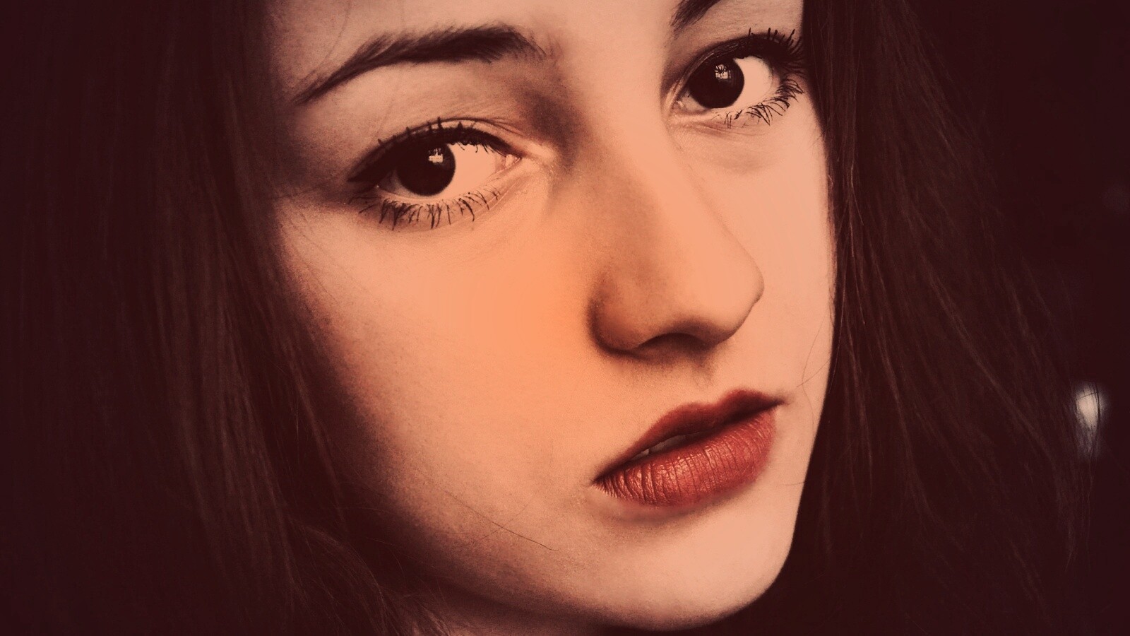 «Брюнетка с ярким макияжем и печальным лицом»