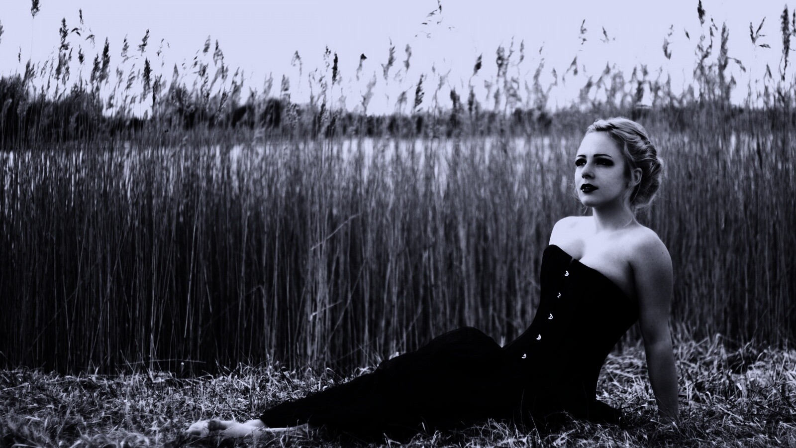 «Девушка на траве в черном корсете»