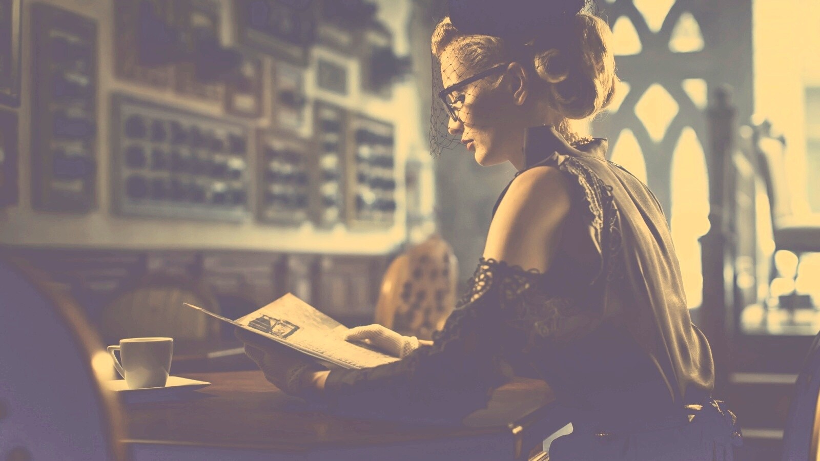 «Витажная девушка в кафе»