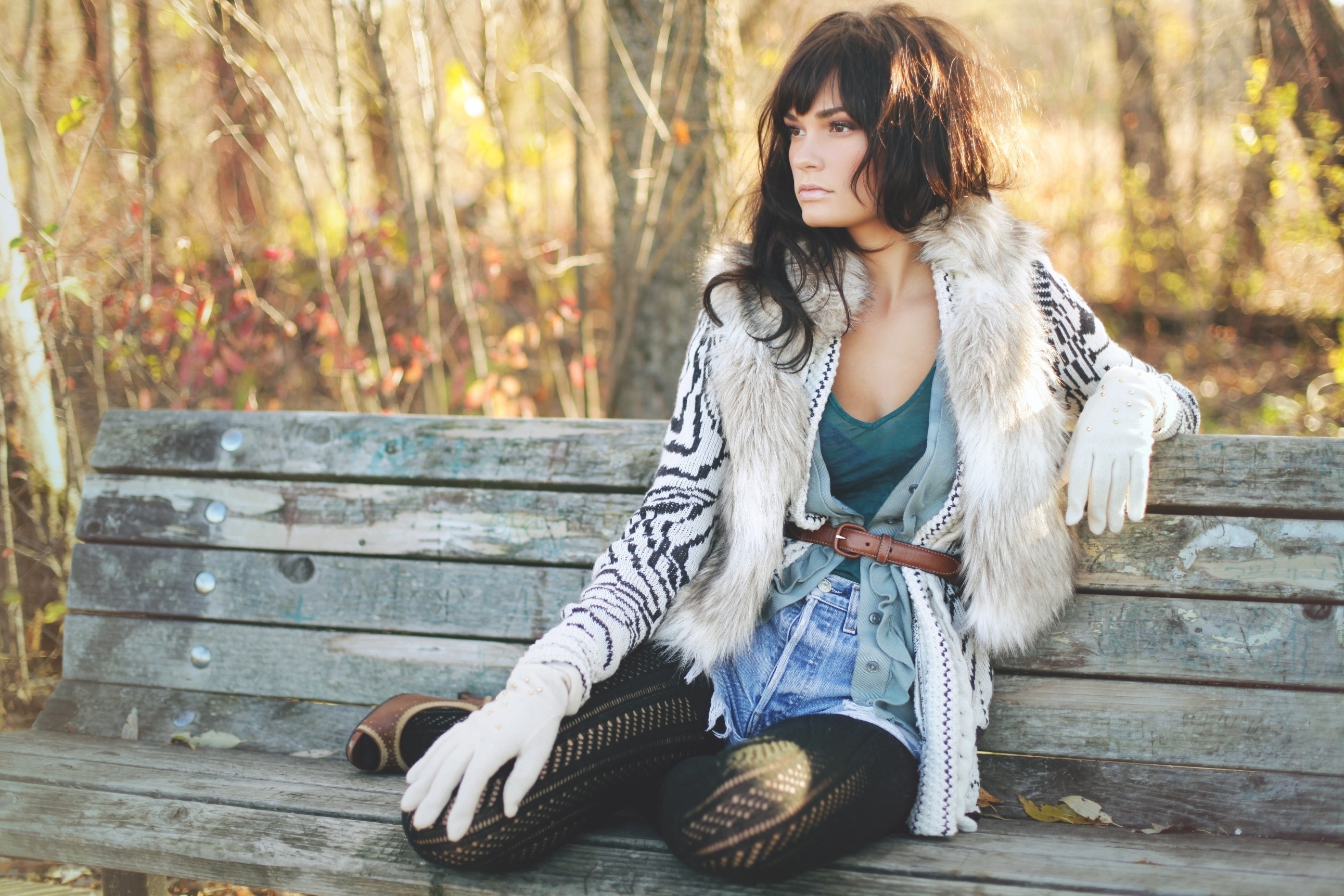 «Красивая девушка сидит на скамейке»